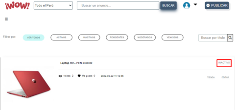 3. finalmente su anuncio se visualizara como "Inactivo"