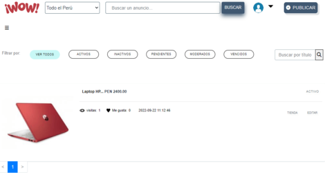 1. Cuando inicie sesion seleccione el icono de perfil, hacer click en "Mi Anuncios", ahi se podra visualizar todos los anuncios que publicó