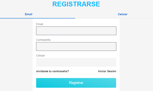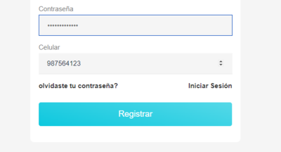 2. se muestra un formulario de inicio de sesion,clickear la opcion "Registrarse" y pulsar en la opcion "celular"