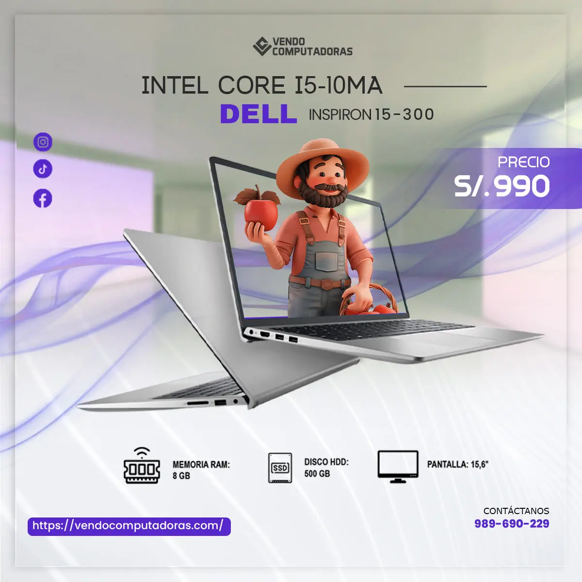 Detalles del equipo: Cuenta con 8 GB de memoria RAM Disco duro de 500 GB (HDD) Pantalla amplia de 15.6 pulgadas ¡Te llevas gratis un teclado y un mouse como bono especial! Nos encontramos en el Centro de Lima Entrega inmediata disponible Incluye garantía Contáctame al 989690229 para más información o para coordinar la entrega