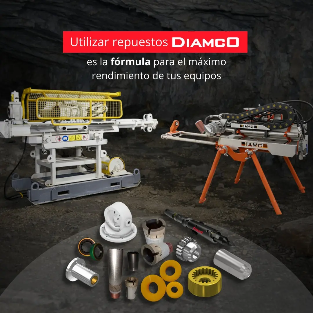 Optimiza el rendimiento y la vida útil de tus equipos utilizando repuestos originales DIAMCO, diseñados específicamente para perforadoras diamantinas en superficie e interior mina. En DIAMCO ofrecemos una amplia gama de repuestos y componentes de alta precisión, fabricados con estándares industriales para soportar las condiciones más exigentes de la exploración minera, geotecnia y perforación diamantina. *Repuestos disponibles: 1. Componentes neumáticos 2. Rotores y paletas (vane) 3. Bujes, casquillos y acoples 4. Engranajes y piezas mecanizadas 5. Accesorios y consumibles para perforadoras diamantinas 6. Repuestos compatibles con equipos DIAMCO y modelos similares